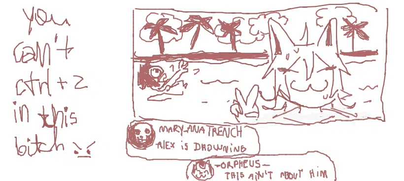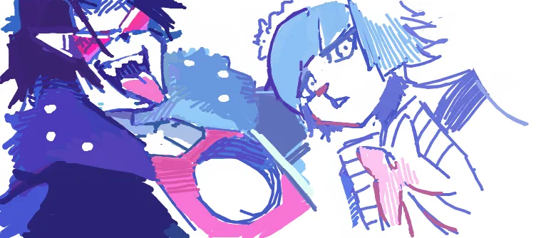 Q: i like when mary goes *chainsaw noises* haha. Can you draw them sharing a milkshake with one those heart shaped straws?